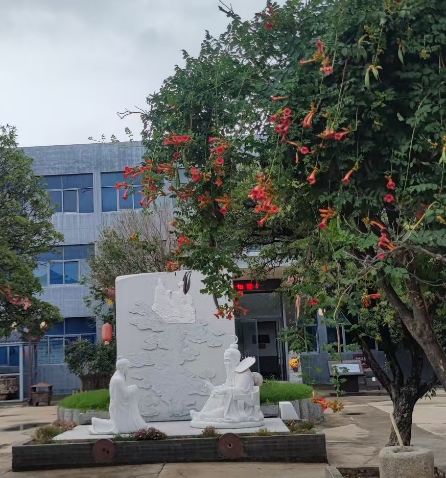 一尊汉白玉雕像,凝固了老子授经尹喜的刹那。雕塑不语,却道尽道经初传的庄严;祥云流转,似有千···