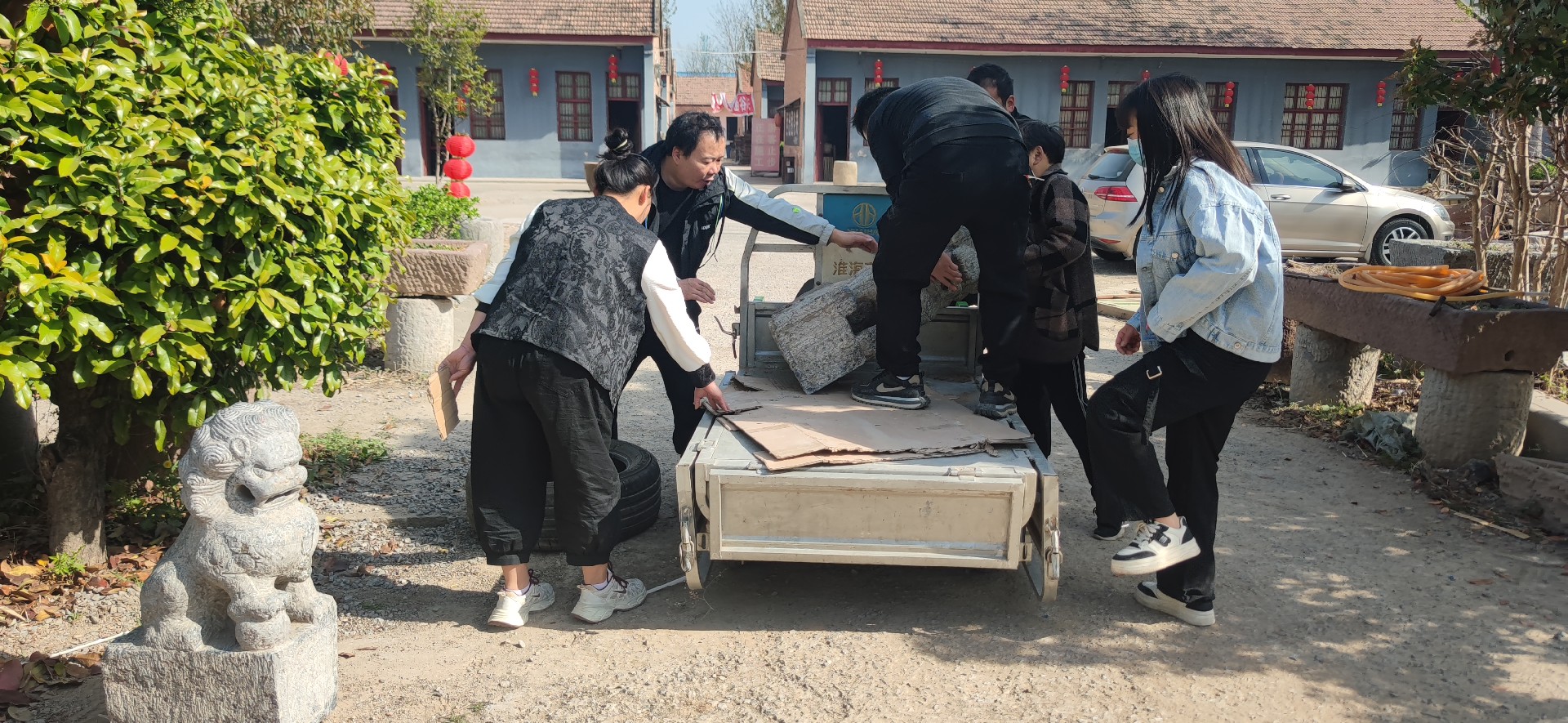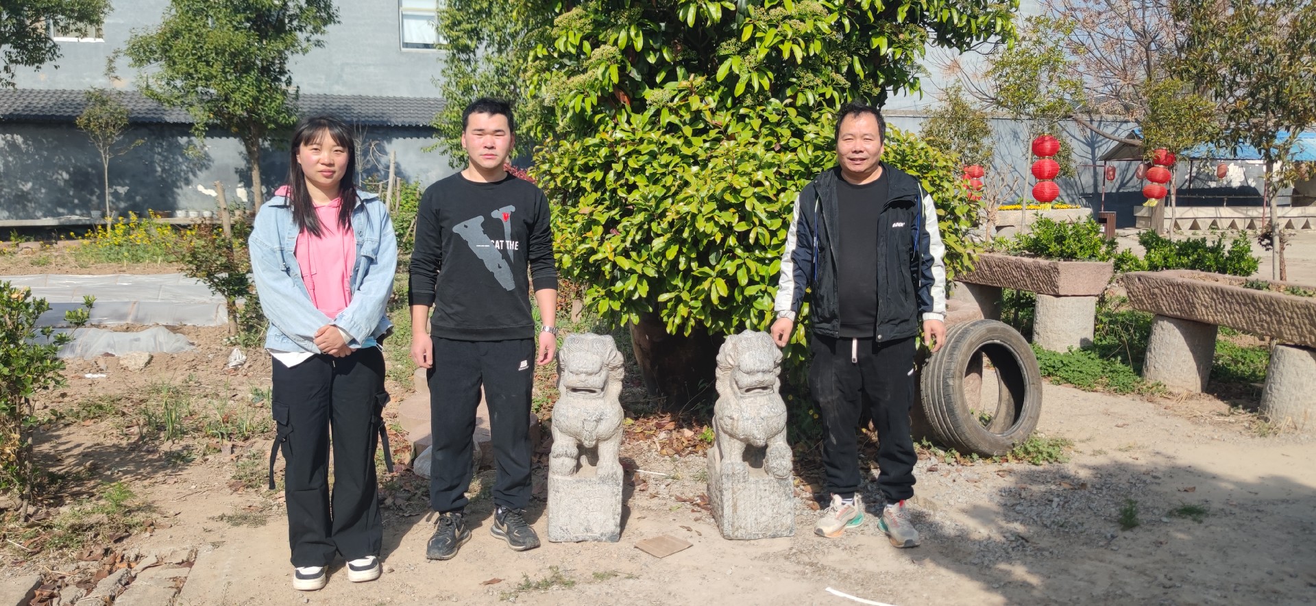 (中国老子网)2025年4月5上午,河南省鹿邑县太清宫镇营子寨行政村郭闫庄村王文成一家人捐赠给老子历史博物馆石雕狮子一对!